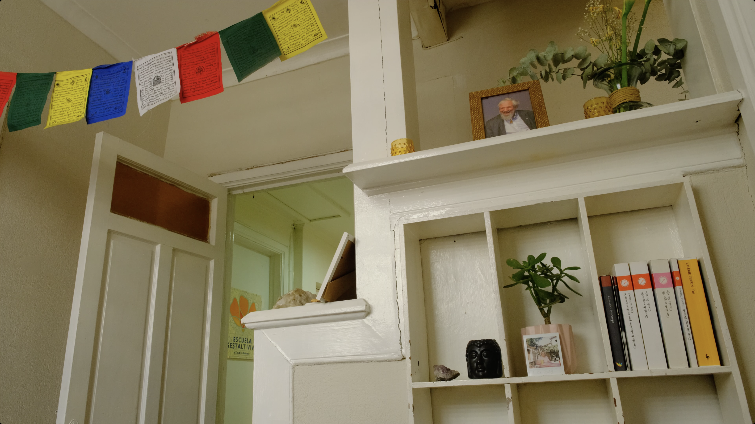 En esta casa se hace terapia, talleres, se reúnen profesores a pensar el futuro de la formación de terapeutas, se reúne el equipo extendido de la Escuela. En esta casa se ha meditado, trabajado con el cuerpo, explorado caminos diversos de autoconocimiento que la han ido tiñendo de vida y afectos. Es una casa nuestra: de todos los que somos y hemos sido parte de la escuela.